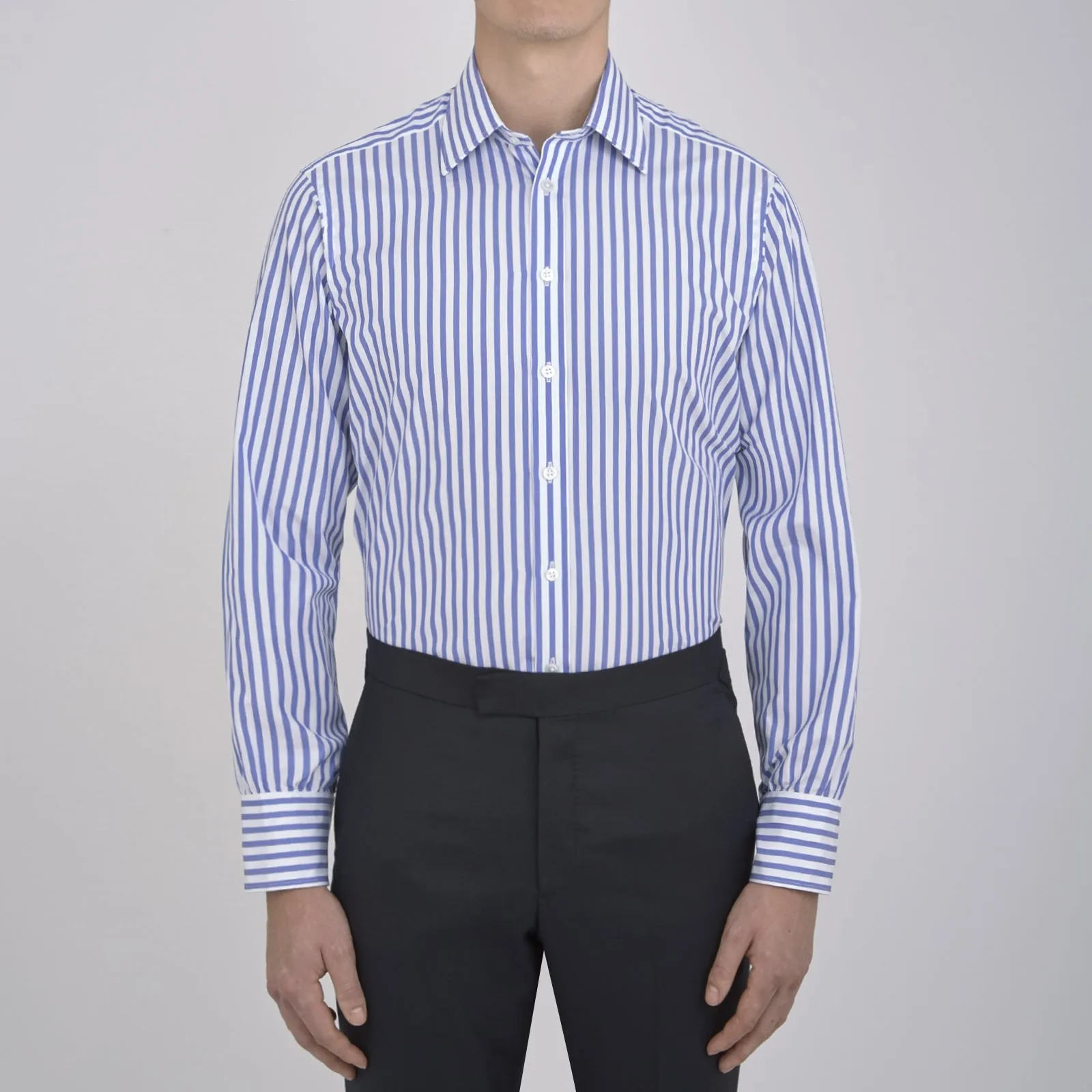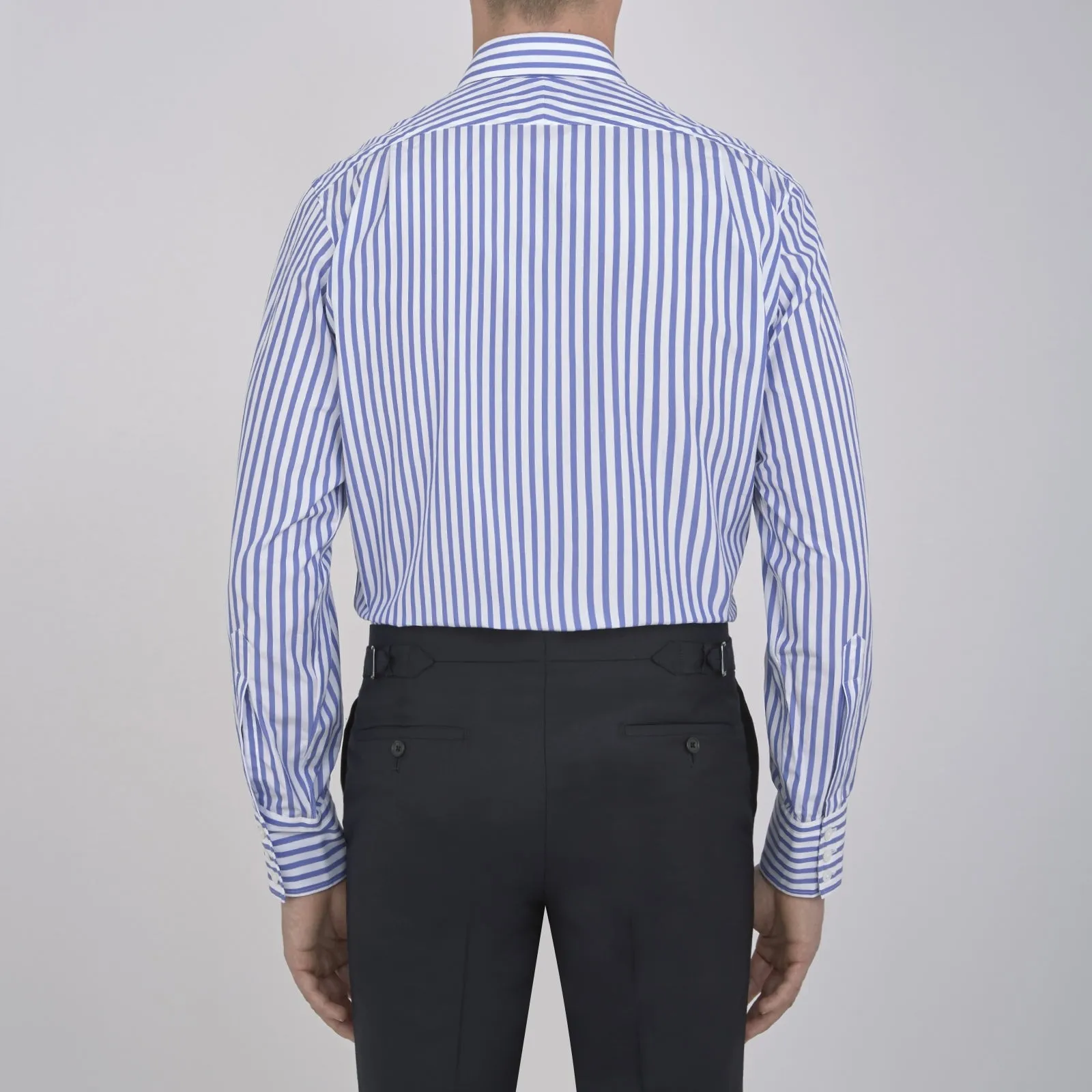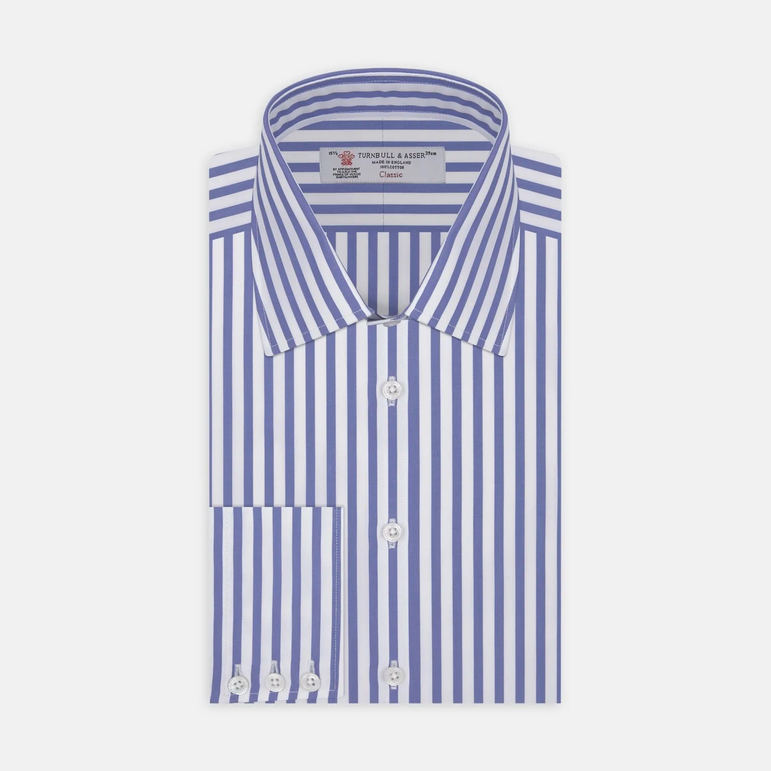 Effortlessly fresh blue and white candy stripes and a classic T&A collar makes this cotton shirt a brand signature. Contrast the linear design with a bold spotted tie for a touch of British eccentricity.
