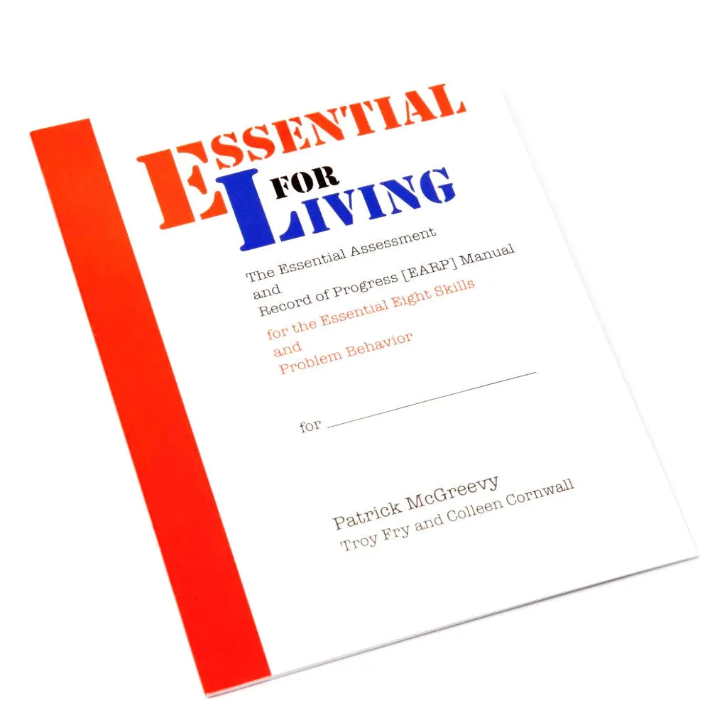 The EARP (Essential Assessment and Record of Progress for the Essential Eight Skills and Problem Behavior) is a 26-page manual that focuses on the eight critical skills that all learners will need as adults, covering must-have indications of interest, requests, and related listener responses; following directions related to health and safety; daily living skills related to health and safety; and tolerating skills related to health and safety. It is designed to accompany the Essential for Living: Professional Practitioner's Handbook.