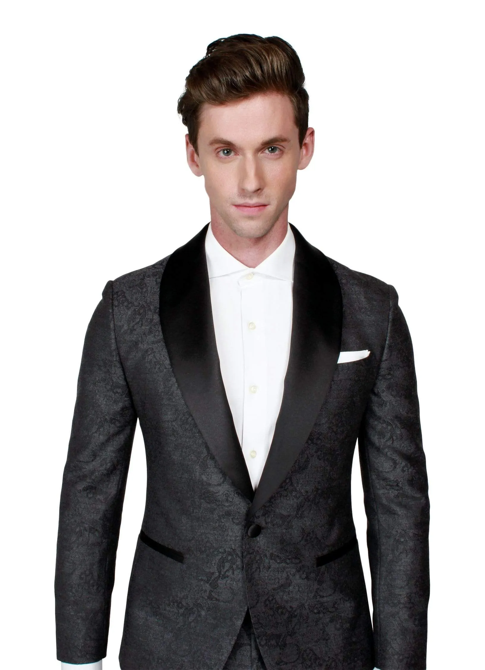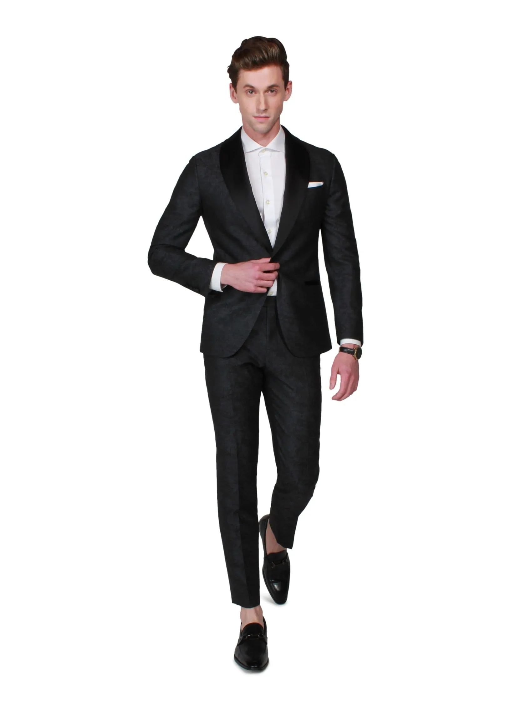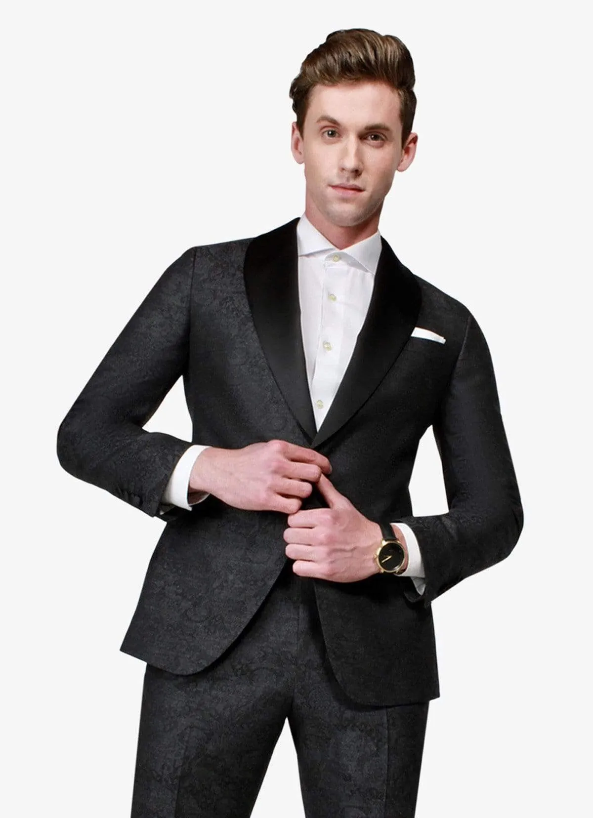 The regal Monaco style suit is the classic tuxedo evening wear with a personality that should be a part of every man’s wardrobe. After all, the power of a bold pattern is not to be underestimated – it can be pulled off successfully for all kinds of events and occasions. It is exquisitely finished as you can see from the wide shiny shawl lapels, while the tiny yet functional cuff buttons guarantee a comfortable fit without impairing movement. The flat front trousers are equipped with suspender buttons for convenience. Brace yourself for the admiring glances.