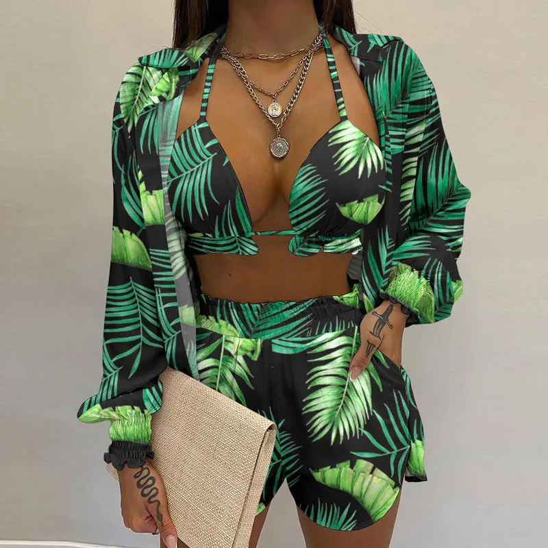 Perfect for Beach Lounging and Beyond: Whether you're planning a beach day, a tropical vacation, or a leisurely day by the pool, the Triangle Bikini Top with Matching Shorts and Blouse is the perfect choice for your sun-filled escapades. It seamlessly transitions from beachside relaxation to stylish beachfront cafes.